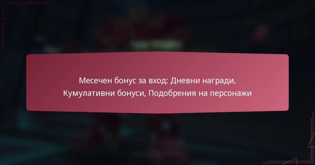 Месечен бонус за вход: Дневни награди, Кумулативни бонуси, Подобрения на персонажи