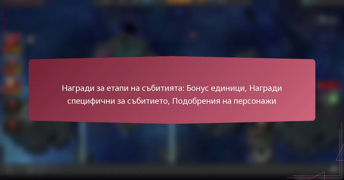 Наградите за етапи на събитията са награди, които се дават на участниците, когато достигнат конкретни постижения по време на събитието. Тези награди служат за мотивация и признаване на усилията и постиженията на индивидите през цялото събитие.